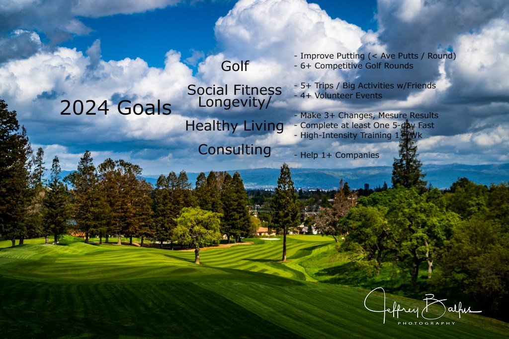 Longevity / Healthy LivingMake 3+ Changes, Measure ResultsMost important to me is living a healthy life. I made good progress this year in making changes and implementing a measurement process. I want to do more in 2024.